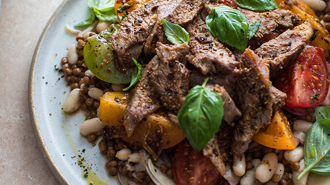 Začinjena janjetina sa salatom od bijelog graha i rajčice