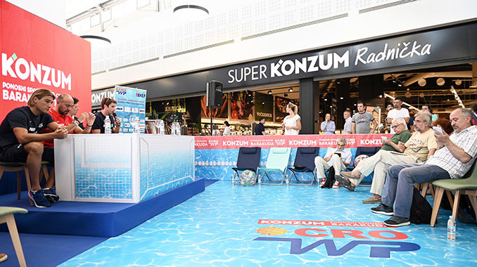 Izvršni direktor Hrvatskog vaterpolskog saveza Perica Bukić i izbornik Ivica Tucak danas su s hrvatskim vaterpolskim reprezentativcima Marom Jokovićem i Antom Vukičevićem posjetili Super Konzum Radnička te pozvali kupce da ih bodre na predstojećem Svjetskom prvenstvu u Južnoj Koreji od 12. do 28. srpnja. Pred njima je obrana zlata s prošlog Svjetskog prvenstva u Budimpešti, a u tome će ih podržati Konzum kroz nedavno sklopljeni ugovor o sponzorstvu.