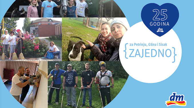 U sklopu natječaja {ZAJEDNO} za Petrinju, Glinu i Sisak dm je odabrao 32 projekta za pomoć potresom pogođenim područjima u čiju će realizaciju uložiti više od 4 milijuna kuna. Povodom 25. obljetnice poslovanja dm-a u Hrvatskoj, u Sisku, Petrinji, Glini, Komarevu, Gori, Vrginmostu, Topuskom, Majskim Poljanama, Hrvatskoj Kostajnici i Sunji zaživjet će projekti koji će omogućiti brži oporavak od posljedica potresa te poduzetnički, kulturni i društveni razvoj Sisačko-moslavačke županije.
