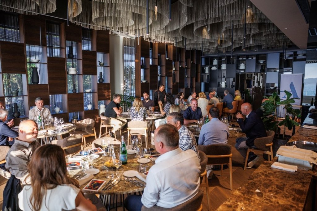 Večera je okupila četrdesetak gostiju – predstavnike lokalne zajednice, medije, poslovne partnere te kulinarske entuzijaste – a večerom su dominirali okusi boškarina i mlade mliječne istarske janjetine (agnelino da latte), interpretirani na suvremen način od strane vrhunskog chefa Gorana Kočiša, prvog nositelja Michelinove zvjezdice u kontinentalnoj Hrvatskoj.