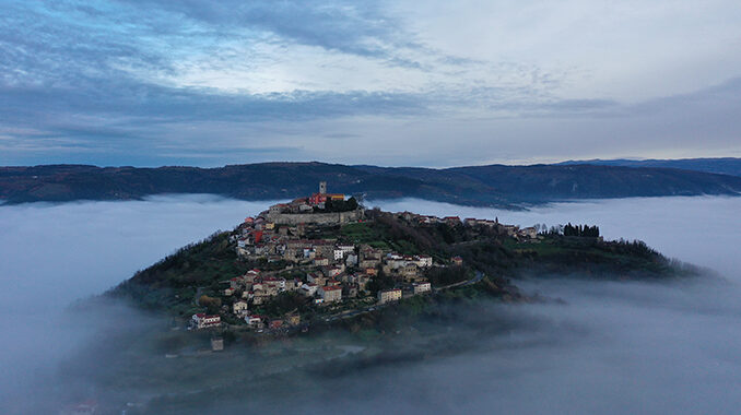 Town of Motovun surrounded by morning fog. (National Geographic)