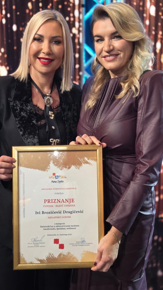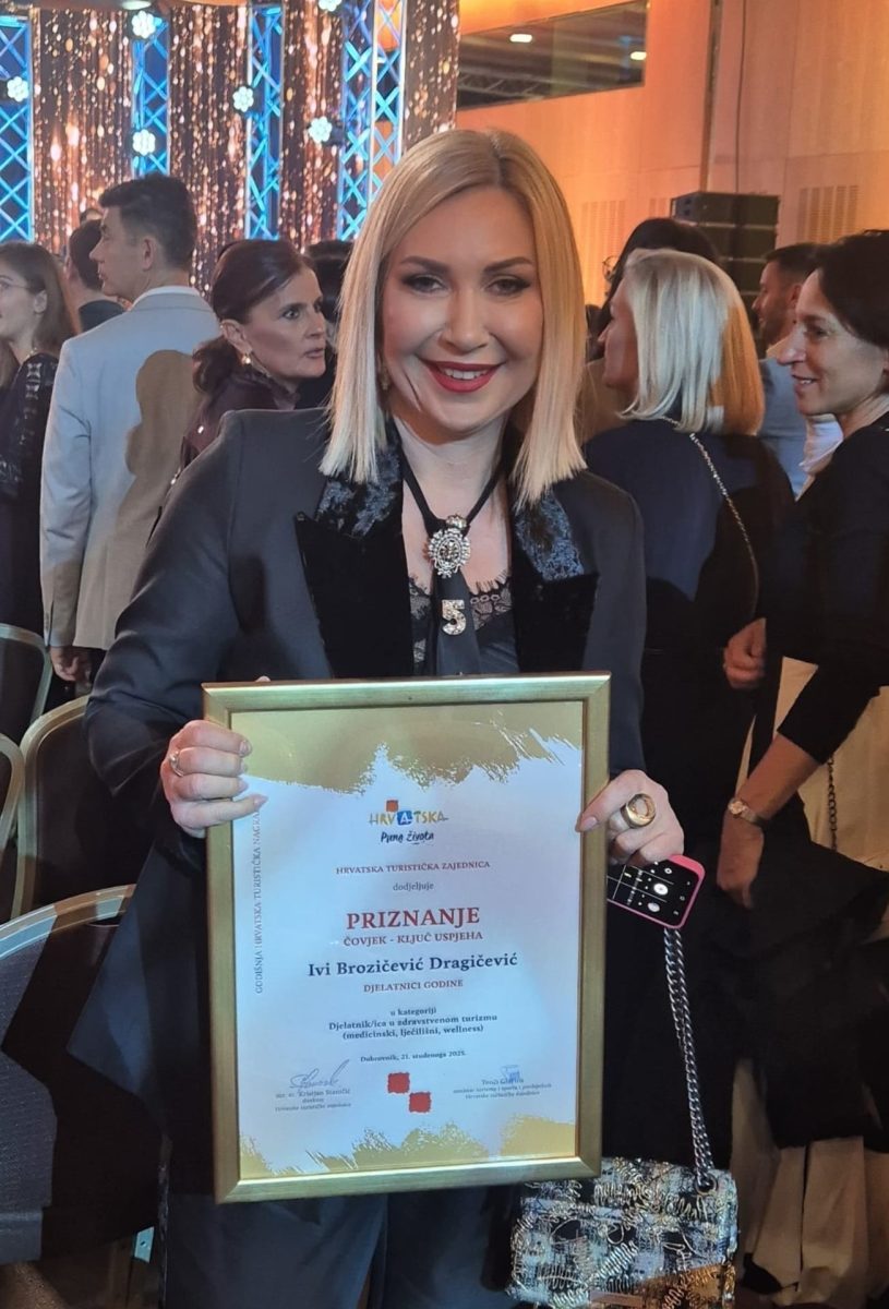 „Izuzetno sam počašćena što sam na Danima hrvatskog turizma dobila priznanje i prestižnu nagradu Čovjek – ključ uspjeha za djelatnicu godine u zdravstvenom turizmu. Ova nagrada za mene predstavlja veliko profesionalno priznanje, ali i potvrdu dugogodišnjeg rada, predanosti i strasti prema unapređenju zdravstvenog turizma u Hrvatskoj. Posebno mi je važno što se ovim priznanjem prepoznaje i važnost integriranja mentalnog zdravlja u suvremene zdravstveno-turističke programe, jer bez mentalne dobrobiti nema sveobuhvatnog zdravlja. Zahvaljujem organizatorima, Hrvatskoj turističkoj zajednici, Ministarstvu turizma i sporta te Hrvatskoj gospodarskoj komori, na kontinuiranom prepoznavanju i poticanju razvoja zdravstvenog i wellness turizma. Ovo priznanje dijelim prvenstveno sa svojom obitelji, ali i cijelim timom Poliklinike Terme Selce, s kojima svakodnevno radim na razvoju inovativnih programa te stvaranju vrhunskog iskustva za naše pacijente i goste. Posebno sam ponosna na programe koji spajaju rehabilitaciju, prevenciju i wellbeing, jer upravo taj integrirani pristup daje najbolje dugoročne rezultate. Pred nama je još puno posla, ali upravo ovakva priznanja daju snažan poticaj za nastavak stvaranja novih programa i podizanje standarda. Nastavit ćemo jačati poziciju Hrvatske i crikveničke rivijere kao jedne od vodećih destinacija zdravstvenog i wellness turizma, s posebnim naglaskom na holistički pristup zdravlju.“ – riječi su Ive Brozičević Dragičević, nagrađene djelatnice, koja nije skrivala zadovoljstvo!