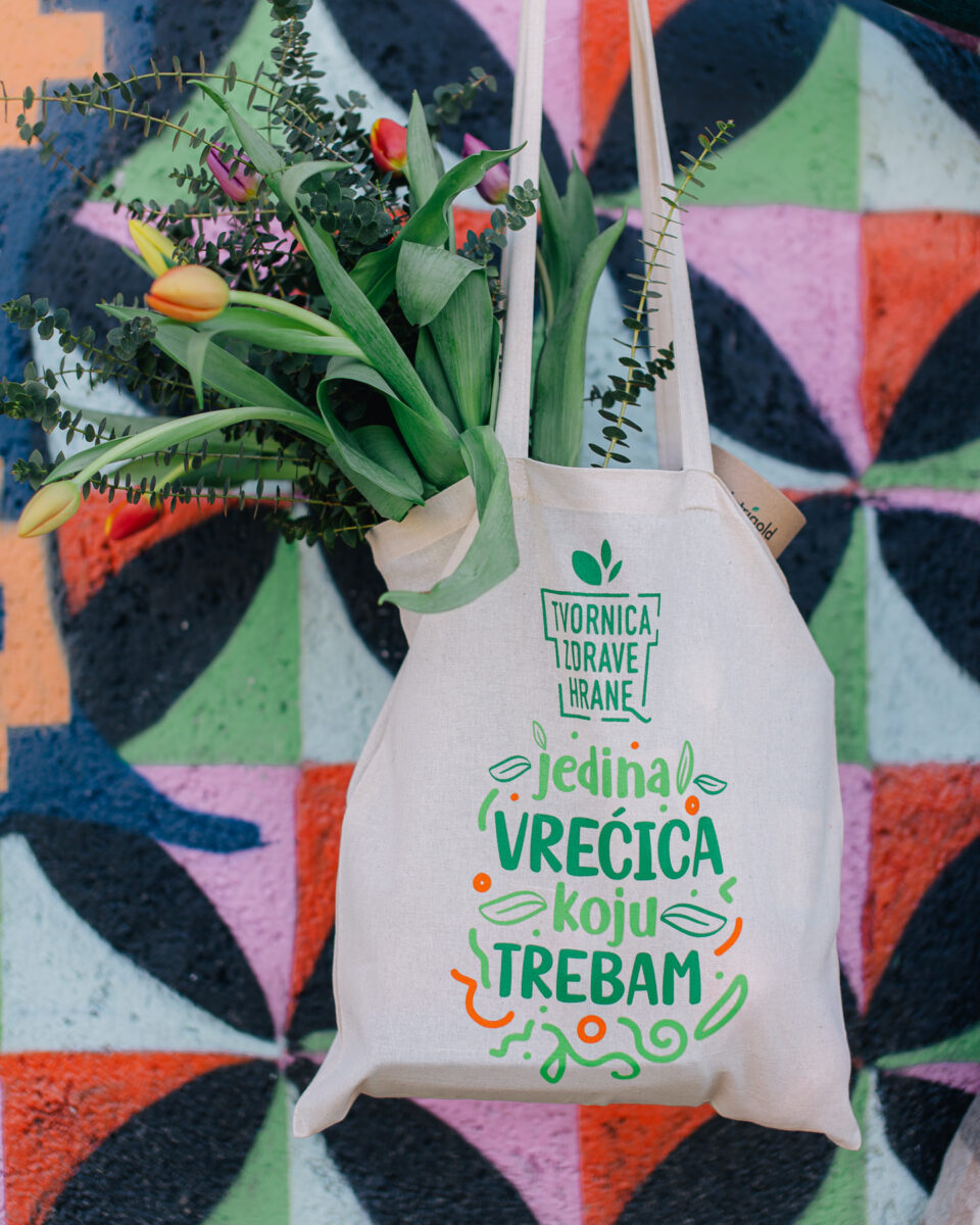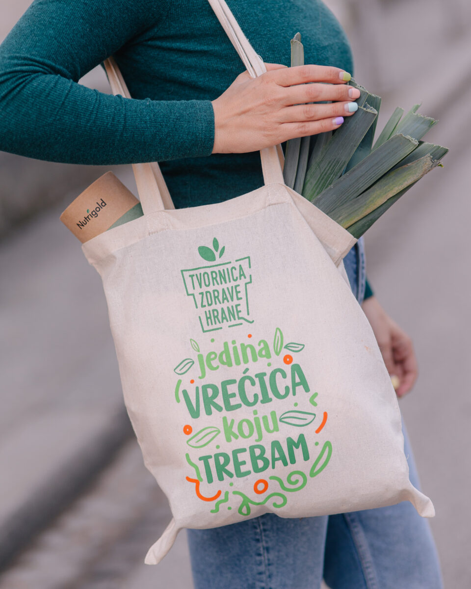 Ekološki i u skladu sa svojim zelenim poslovanjem, Tvornica zdrave hrane odlučila je svoje obožavatelje razveseliti novim artiklom u ponudi – platnenom vrećicom uz koju nikad neće trebati neka druga. Većim dimenzijama i šaljivom, ali snažnom porukom, s ovom vrećicom kupovina u njihovim prodavaonicama, „špeceraj“ ili odlazak na plac mogu početi!