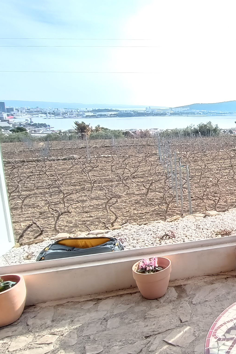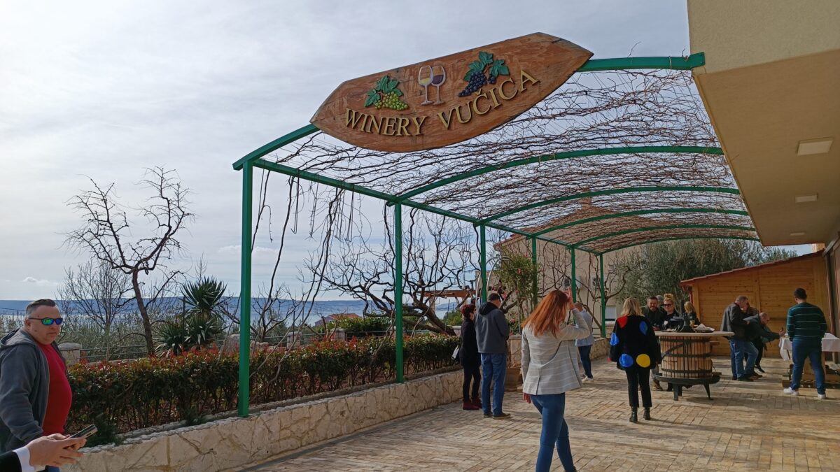 Nakon brzinskog proučavanja vinske prošlosti, poželjeli smo upoznati i vinsku sadašnjost. Želja nam je bila upoznati i neke nove vinarije koje, nasreću, sve češće niču na kaštelanskom području. Jedna od njih je svakako i Vinarija Vučica iz Kaštel Kambelovca u kojoj su nas, osim vinom, počastili vrlo ukusnim ručkom u tri slijeda. U ugodnom ambijentu moderne vinarije, s čije terase pogled puca na plavo more Kaštelanskog zaljeva, dočekali su nas Anđela i Josip Vučica, mladi par zaručnika, koji su 2019. godine hrabro odlučili oživjeti gotovo napuštene obiteljske vinograde i upustiti se u proizvodnju vina.