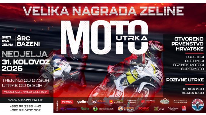 Pozivamo sve entuzijaste i ljubitelje motosporta da se pridruže ovom jedinstvenom događaju, moto utrci „Velika nagrada Zeline“ koja starta u nedjelju, 31. kolovoza 2025. od 7:30 sati s treninzima, a utrke počinju od 13:30 sati.