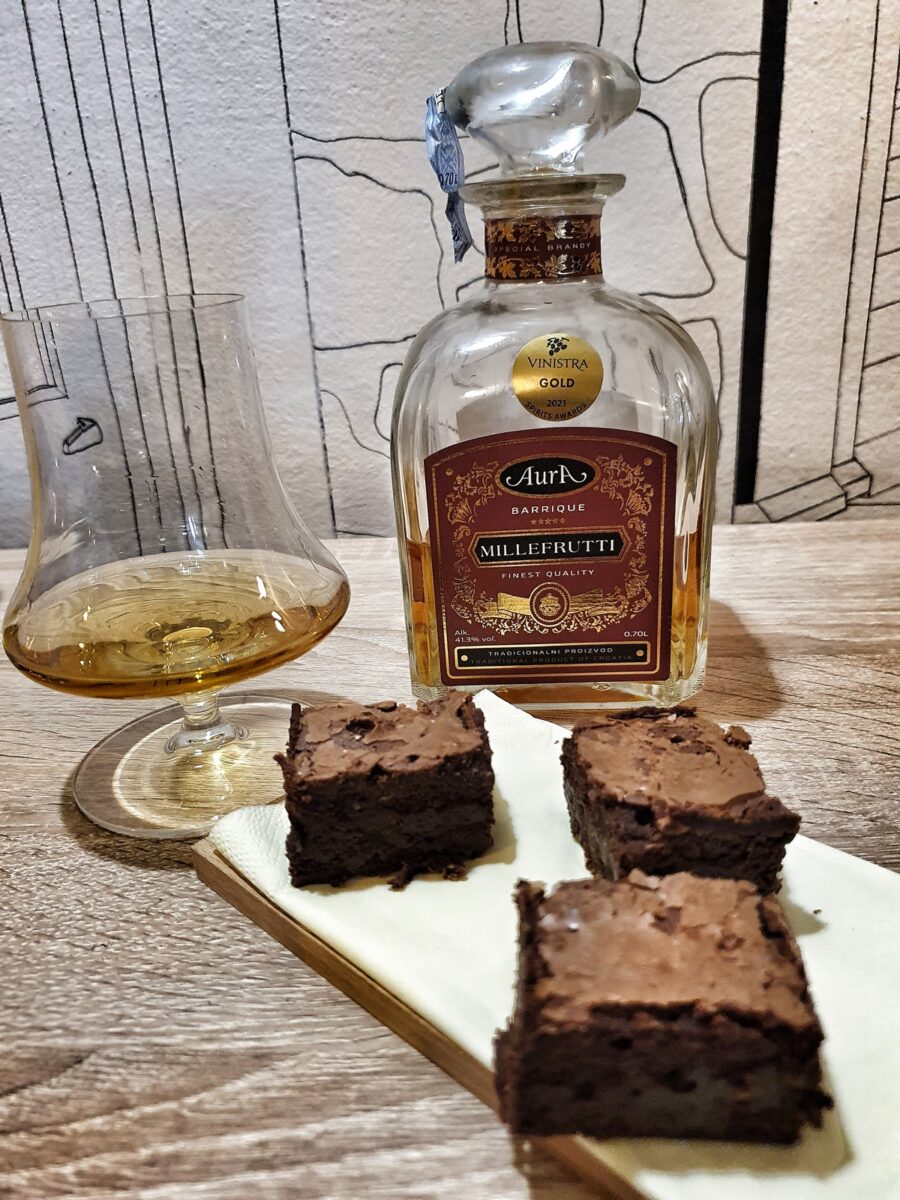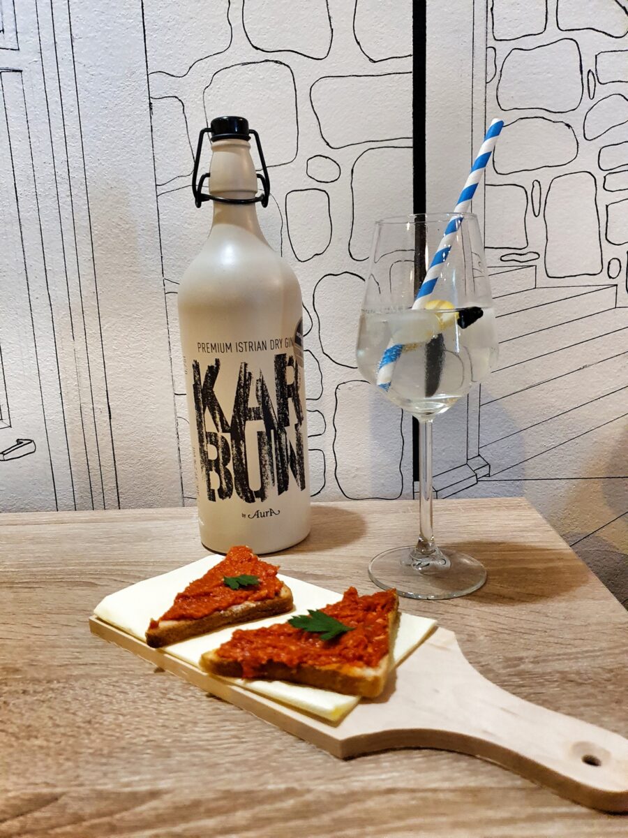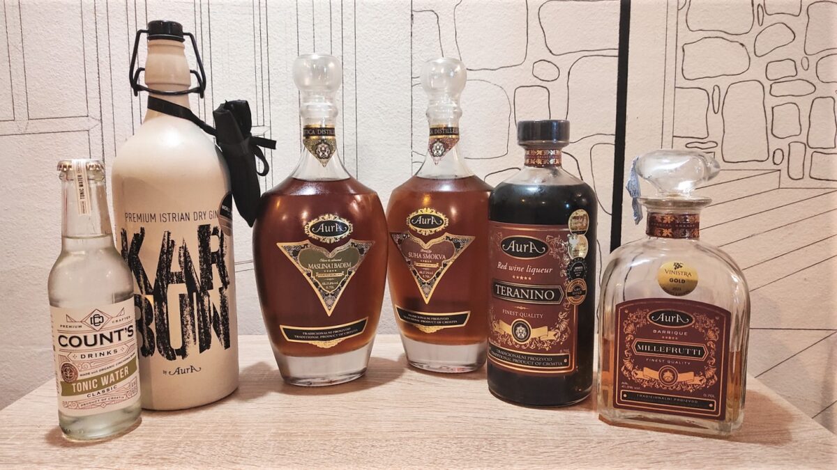 Kušali smo Gin-tonik i bruskete s beef tartarom, rakiju ‘Maslina badem’ uz tunu s maslinama i tostiranim bademima, rakija ‘Suha smokva’ sljubljena je s paletom tvrdih sireva, ‘Teranino’ je poslužen uz Panna cottu sa šumskim voćem, a na kraju smo probali Aurin premium proizvod Millefrutti uz čokoladne brownije. Za gin-tonik korišten je gin Karbun, priznat kao jedan od najboljih u svijetu, a tonik je također stigao iz Istre; radi se o craft toniku Count’s drinks Marka Bratovića.