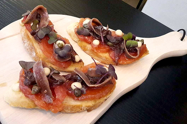 slane inćune sa karameliziranim lukom i konfitiranim rajčicama