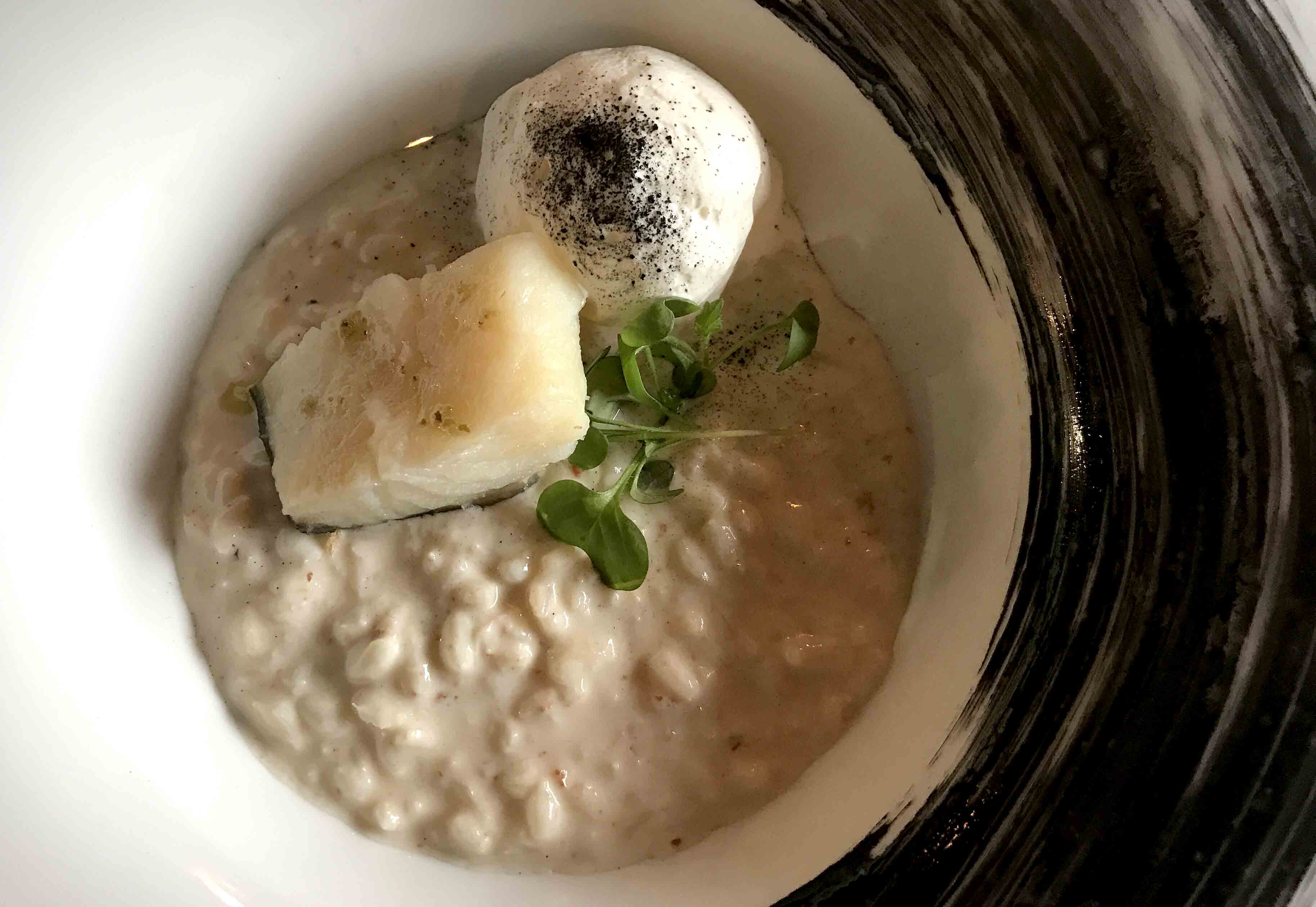 Bakalar lagano zapečen na mlakom “sutlijašu” riži na mlijeku sa komadićima ribe činio je nježan prelaz glavnom jelu koje je mene osobno najviše oduševilo.