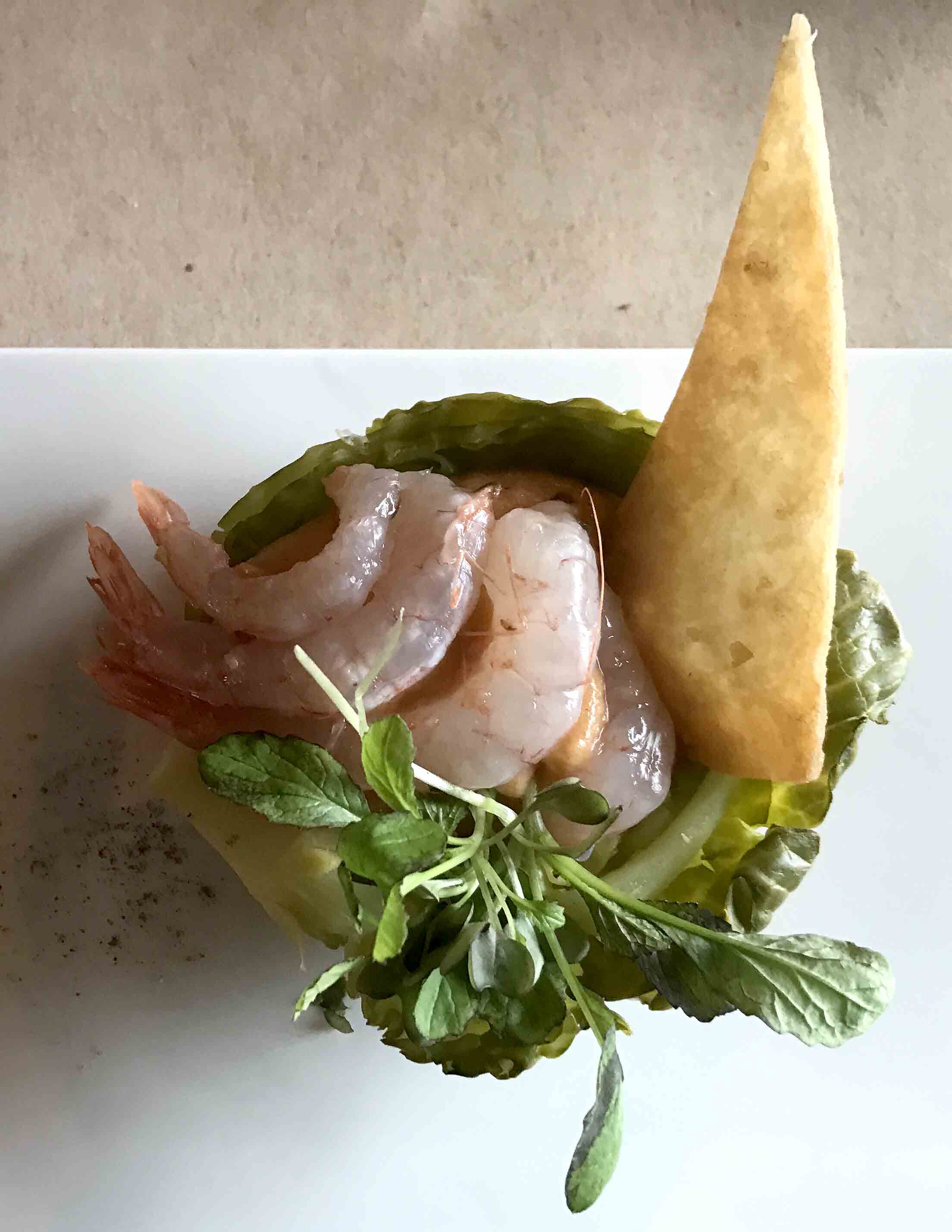 Slijed koji je sada došao na stol prvi put nas je podijelio, fine sviježe kozice ,tipično slatke sparene su sa kuhanim kupusom koji je bio punjenjednim intenzivnim mousseom od kozica i kupusa…. hrabro i intenzivno.