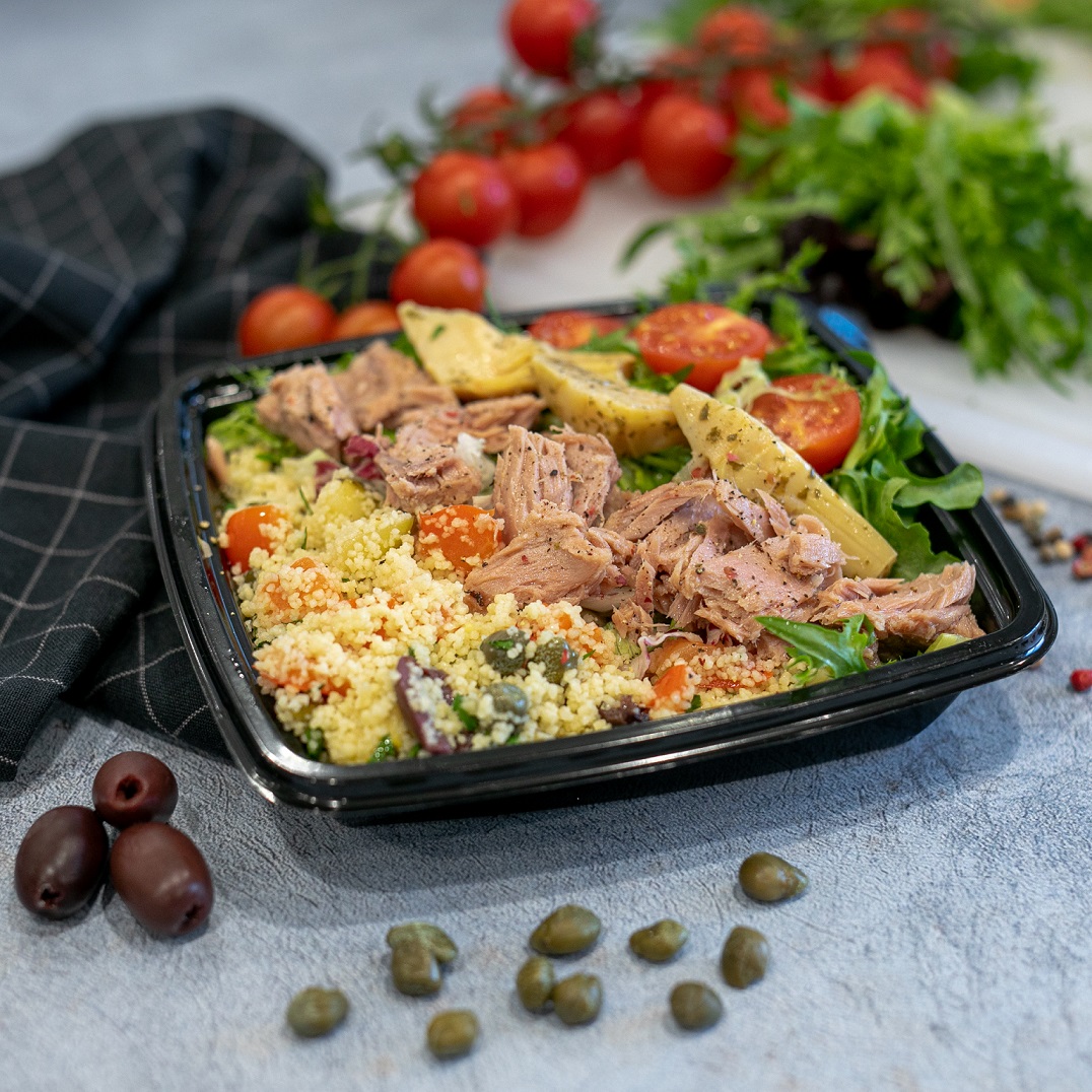 Salatu od tune krasi kombinacija kus-kusa, tune, artičoke, kalamata maslina,kapara te grillanog povrća.Upravo je s ovim proizvodom Dubravica svojim kupcima željela ponuditi zdrav obrok mediteranskog tipa s puno povrća, a njezina tajna je i u tome što u Dubravici povrćegrillaju i potom mariniraju po nekoliko dana, kako bi se postigla punoća okusa.