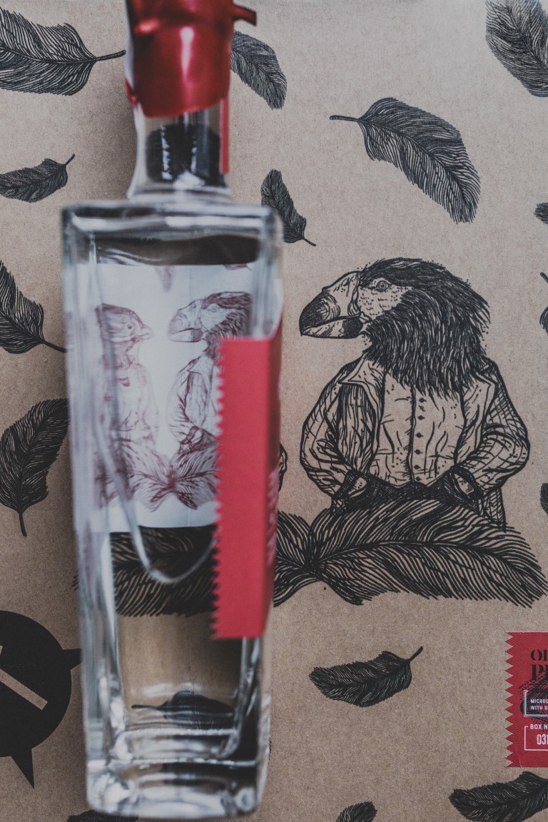 Za izgled etikete koje privlači energijom odabrala je duboku nijanse crvene boje, evocirajući blagdansko raspoloženje, te ju upotpunila OKO ilustriranim likovima. U istom tonu crvene boje je i prepoznatljiv Old Pilot’s čep, čija posebnost leži u vosku koji se koristi pri zatvaranju boce. Kad sam razmišljala o kolaboraciji s Old pilots Ginom, odlučila sam spojiti nekoliko osobnih elemenata u nešto sto je stvorilo toliko neponovljivih priča u mome životu i zapravo definiralo neke od bitnih trenutaka na ovom putovanju života. Gin koji mi je eto, oduvijek drag, tako da mi je omogućio da zaokružim jednu vrlo osobnu priču”. – izjavila je OKO, objasnivši pritom simboliku ptica: “Zadnjih 15 godina jedan od glavnih motiva svih mojih radova su čovjekolike životinje, koje nam kroz svoju naraciju donose poruke osnaživanja i malih skrivenih poruka , kao i basne uz koje smo svi odrasli. Simbolika ptica me fascinira oduvijek, ne samo njihova fizička sloboda da kruže nebom i promatraju svijet iz nekih viših sfera, već simbolizam koji se proteze kroz različite religije i vjerovanja. Simbol besmrtnosti i kao nosioci duša s jednog svijeta na drugi. Djeluju toliko krhko a opet toliko bezvremenski”.