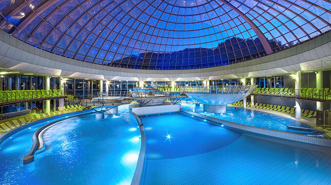 Detoksikaciju možete dodatno potaknuti wellness ritualima, tradicionalnim masažama i opuštanjem u fitness centru. Doživljaj zaokružuje jedinstveni kupališni kompleks pod jednom od najvećih staklenih kupola u Europi. Više od 2200 m² vodenih površina, opuštajuća termalna voda i noćno kupanje pod zvijezdama jamče odmor za pamćenje.