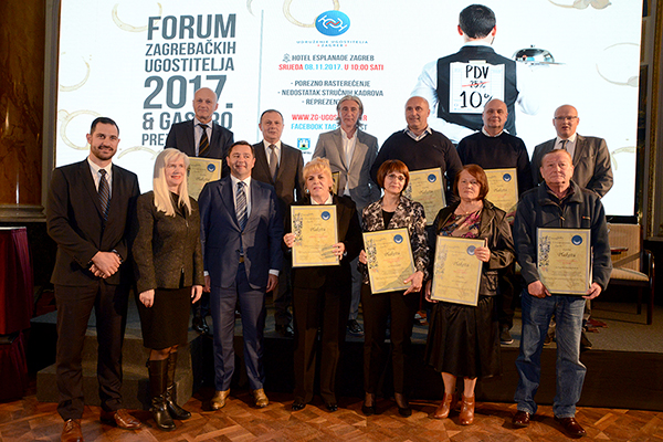 Nakon konferencije za medije dodijeljena su priznanja zaslužnima za dugogodišnji doprinos ugostiteljskoj struci, a priznanje za izuzetan doprinos u radu Udruženja ugostitelja Zagreba i promicanje interesa ugostitelja dodijeljeno je gospođi Zdenki Valentić, bivšoj članici Uprave Udruženja zagrebačkih ugostitelja.
