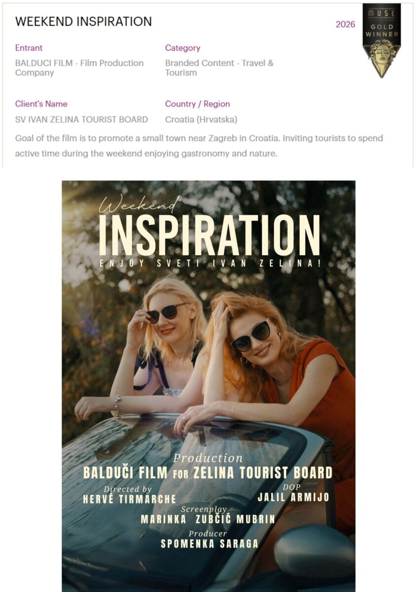 Film Weekend Inspiration Enjoy Sveti Ivan Zelina! -Croatia, osvojio je nagradu na filmskom festivalu “Muse Awards” u New Yorku.